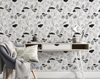 Buy Mushroom Pattern Removable Wallpaper Black And White Wall Online In India Etsy